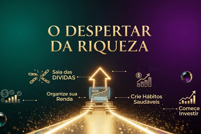 O Derpertar da Riqueza é um ebook completo que reúne educação financeira prática + plano de ação simples, desenvolvido para ajudar pessoas comuns a: